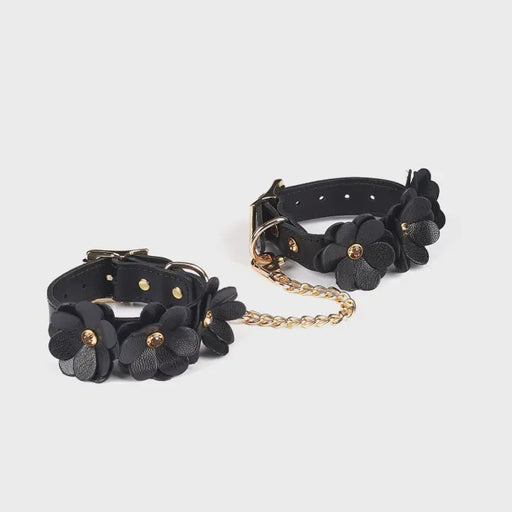 Liebe Seele Black Leather Flowers Hand Cuffs
