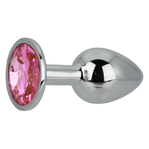 Toosh Silver butt plug with pink jewel Compatible with oil, silicone, and water-based lubricants Flared base for safety Jewelled base for added a...