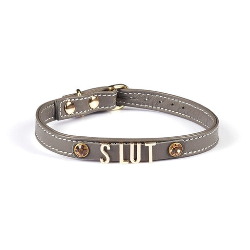 Liebe Seele Italian Leather SLUT choker with gemstones