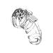 The Man|Cage Model 02 3½" cock cage consists of three parts which fit perfectly together. The two guidance pins connect the top parts and the oval taper pin connects the rings with the cage. A variety of rings in different sizes and distance pieces will allow you to create the perfect size! The rings have a comfortable fit and are absolutely safe. A metal lock or tie-wrap lock can easily close the cage.