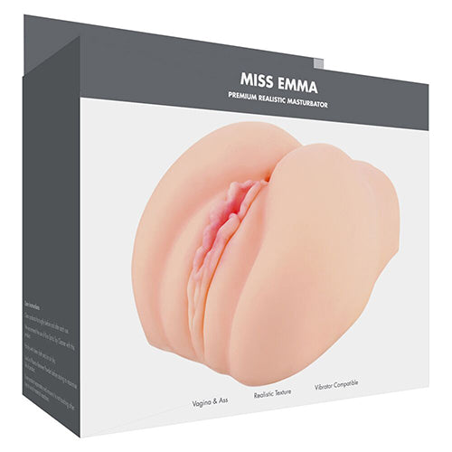The Me You Us Miss Emma male masturbator has a full length tunnel for easy cleaning and is vibrator compatible. This toy has a textured interior that stimulates on insertion. It offers immediate pleasure and lifelike vagina and ass openings for double the fun