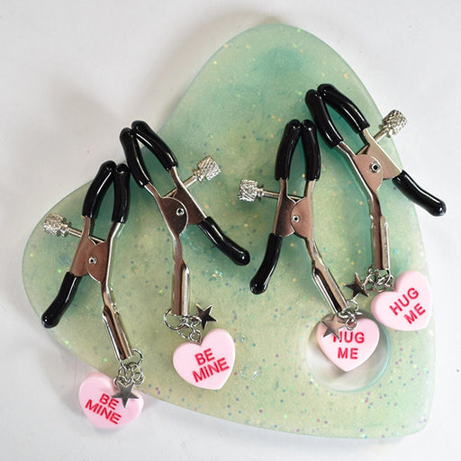 This cute pair of Naughty Pawsies Kitty Paw nipple clamps add a little more fun in the bedroom. Caveat: The charms and chain are NOT tug proof...