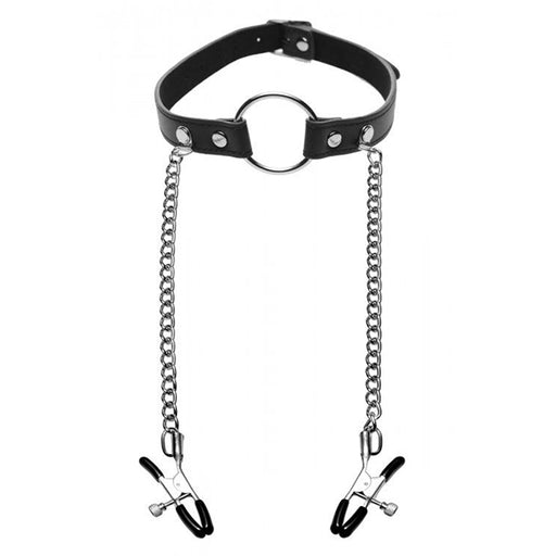 Introduce the teasing torment of nipple play to your next scene with the Sex & Mischief Amor collar with nipple clamps. Equipped with tension a...
