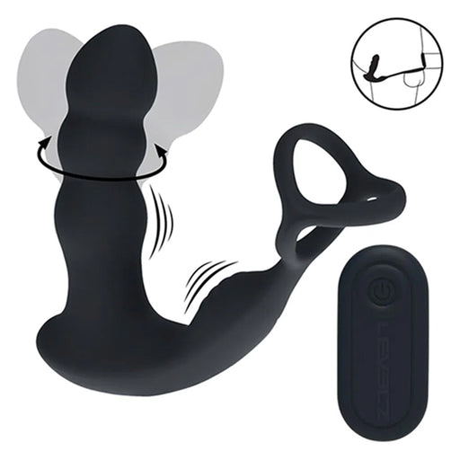 Levelz Dual Vibrating & Rotating Head prostate massager with cock & ball ring