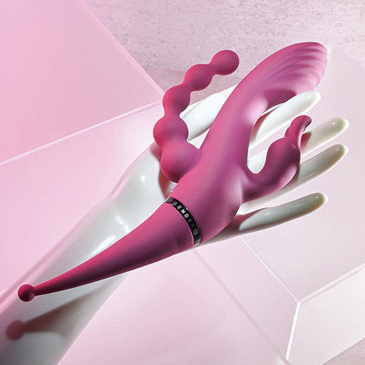 The Gender X Four By Four vibrator has four points of stimulation. The center shaft features two playable ends: a gently curved side with a bulbou...