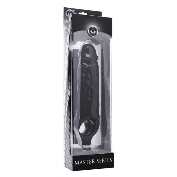 The Master Series Black Mamba cocksheath ensures that you and your partner enjoy the biggest, hardest, and longest lasting erection! Insert your penis into the hollow sheath for added length and girth, and slip your balls inside the stretchy ring for a snug fit to maximize stamina. The Black Mamba will enhance your assets and help you both experience out-of-this-world orgasms!