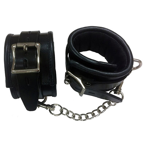 These padded leather ankle cuffs are pure bliss when it comes to bondage. They have a comfortable padded design, and can be worn for extended pleasure, inviting you to play for as long as you like. These ankle cuffs have a D-Ring and a detachable trigger hook chain.