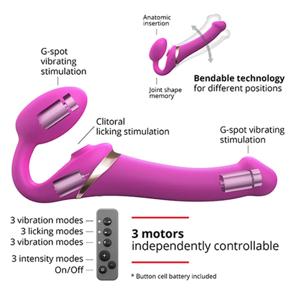 The strap-on-me® Multi Orgasm strapless vibrating strap-on dildo is both elegant and modern. Classic and iconic, this bendable strap-on with its timeless, graphic design is reinterpreted here in a new edition for a more intense sensory experience!