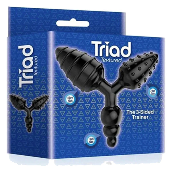 The Icon Triad 3-Way butt plug (textured) allows you to start small, move up to a medium and then when you're ready, you'll be living large. Triad is ergonomically designed to be easy to hold, easy to insert and easy to remove. (It's even easy to clean!)